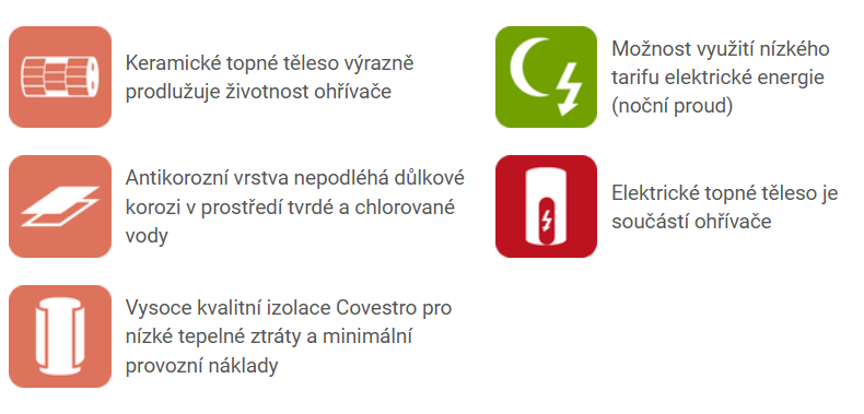 Ohřev zajišťuje keramické topné těleso, ovládané elektronickým termostatem a jištěné bezpečnostním termostatem (tepelnou pojistkou)
