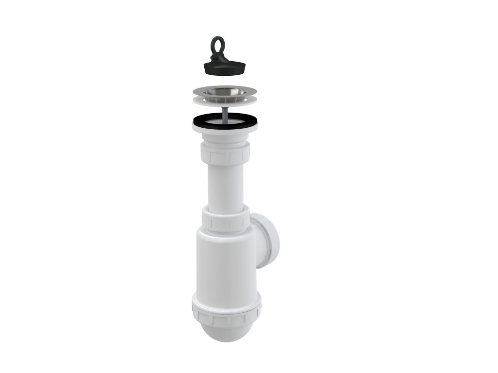 Sifon dřezový DN 40/50 s nerezovou mřížkou O 70 mm, pryžová zátka