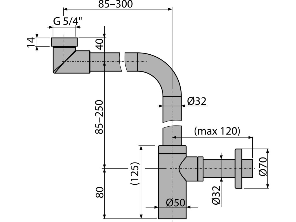 Alcaplast A403 umyvadlový sifon DN32 DESIGN celokovový úsporný