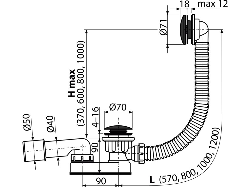 - Délka vanového sifonu 57 cm