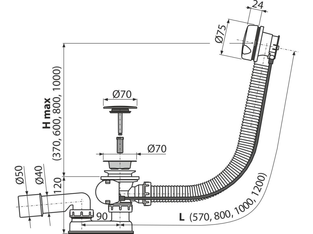 - Délka vanového sifonu 100 cm