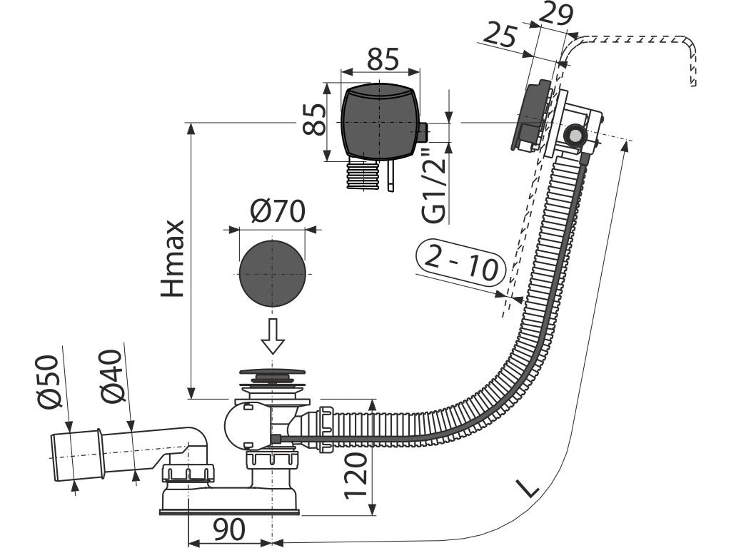 - Délka vanového sifonu 57 cm