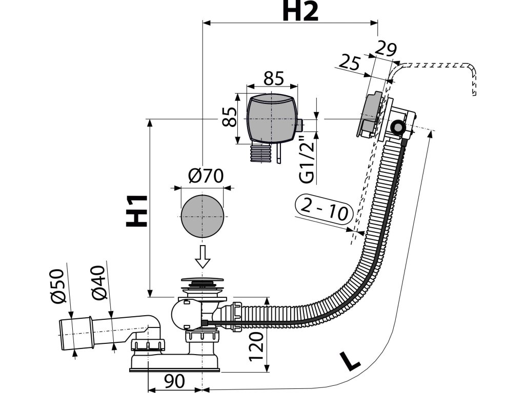 - Délka vanového sifonu 100 cm