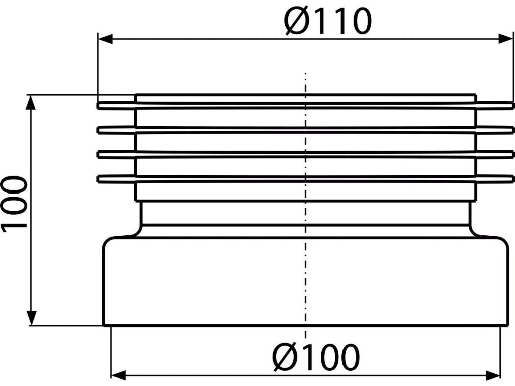 WC manžeta k volně stojícímu WC, přímá, 90–110 mm, délka 100 mm, PVC, bílé
