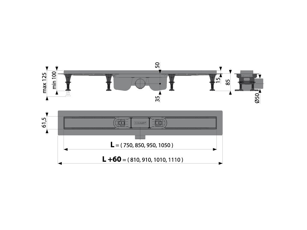 Alcaplast APZ12-1050 Optimal liniový podlahový žlab