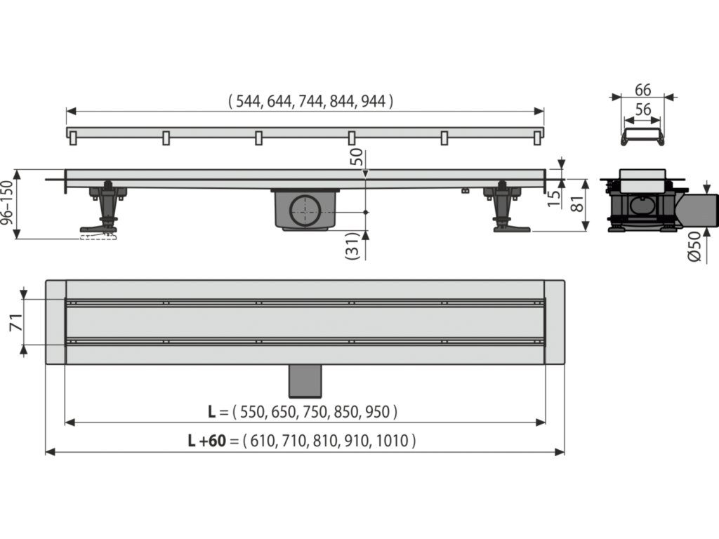 Alcaplast APZ13-DOUBLE9-750 Fit and Go Podlahový žlab s oboustranným roštem