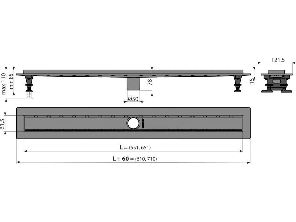 Alcaplast APZ2012-650 Optimal Podlahový žlab s okrajem bez zápachové uzávěry