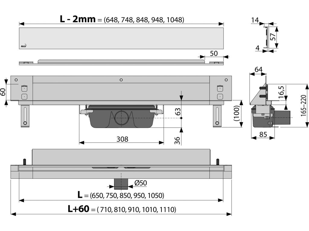 Alcaplast APZ5-SHADE-650 SPA odtokový systém pro zabudování do stěny s roštem