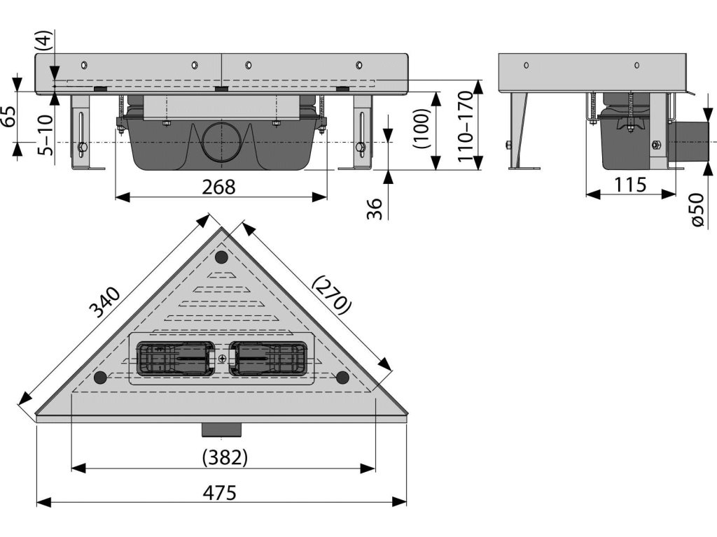 - Mechanicky čistitelný sifon až po odpadní trubku