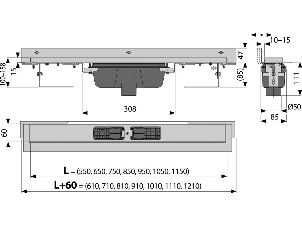 Alcaplast APZ1004-1150 Flexible podlahový žlab s nastavitelným límcem ke stěně