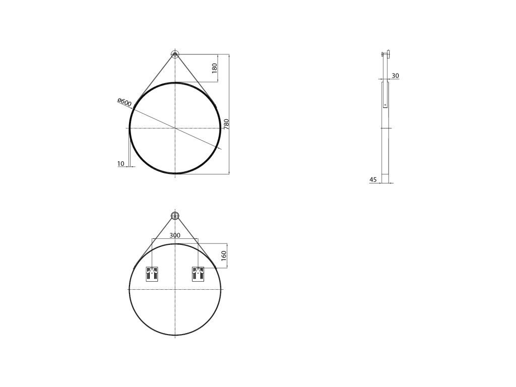 Aqualine Stago kulaté zrcadlo 60 cm bez osvětlení kožený pásek černá mat SG065