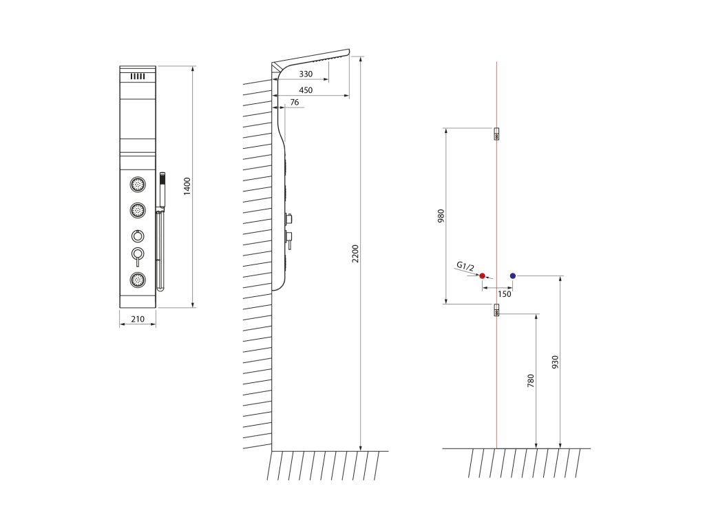 | Ovládání vodovodní baterie: | Pákové baterie |