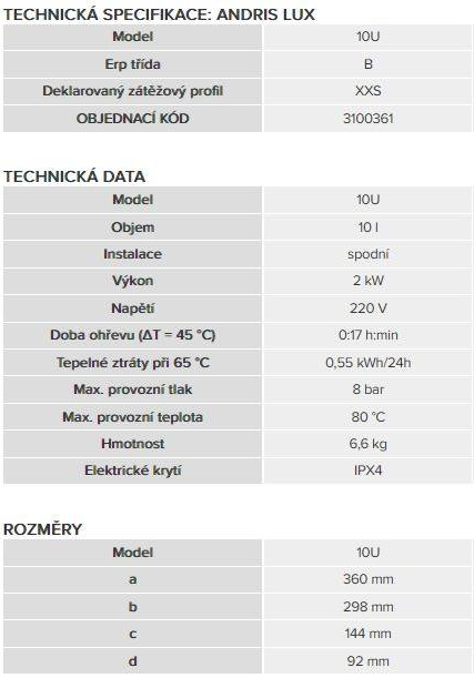 Ariston Andris Lux 10 U elektrický tlakový závěsný ohřívač pod umyvadlo 10l 3100361