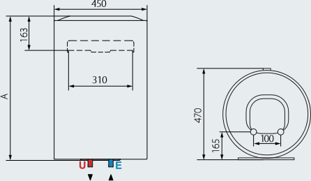 Nástěnný elektrický akumulační bojler s přesným nastavením teploty díky LED display.