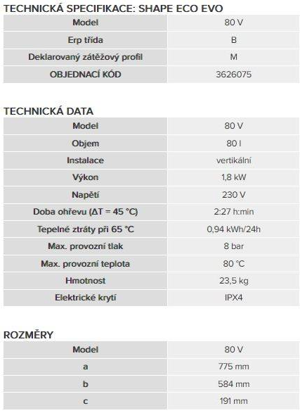 Ariston Shape Eco Evo 80 V 1,8K elektrický závěsný ohřívač 3626075