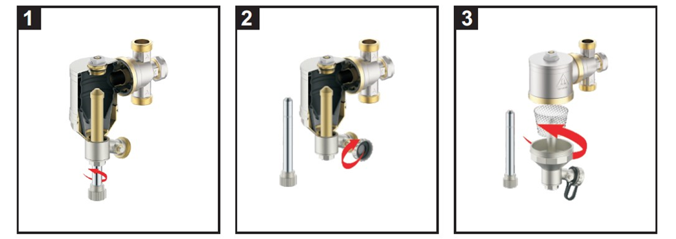 - Před čištěním filtru doporučujeme vypnout kotel a nechat ochladit provozní vodu na bezpečnou teplotu, aby nedošlo k úrazu při čištění.