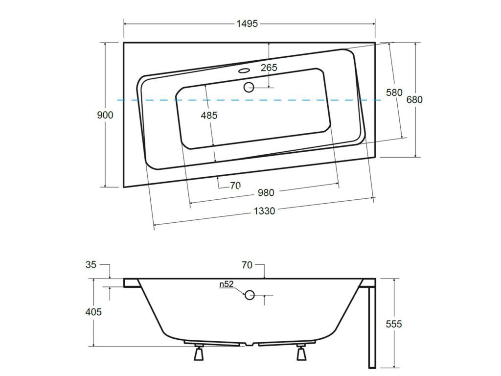- Čelní i boční panel hladký (výška čelního panelu 52 cm + 3,5 cm okraj vany) - NA OBJEDNÁVKU