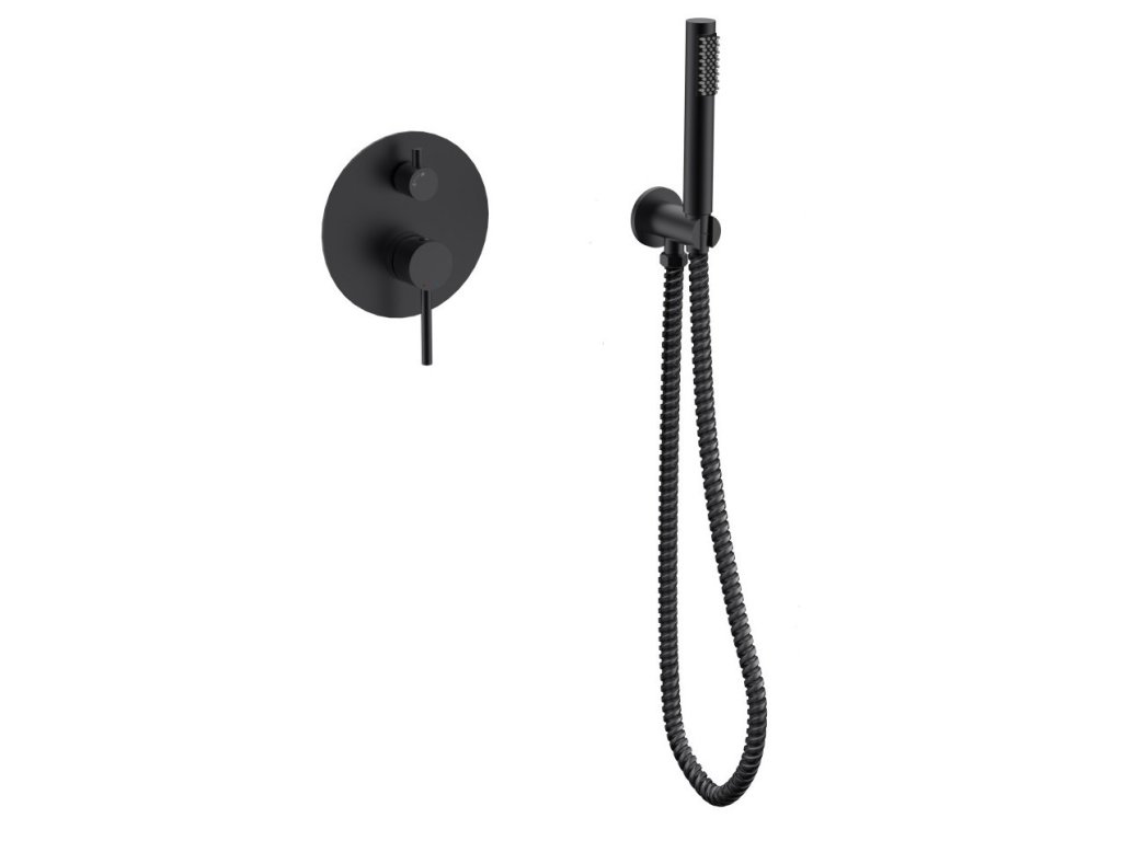 - Set obsahuje podomítkovou baterii, vývod ze stěny s držákem, ruční sprchu a hadici