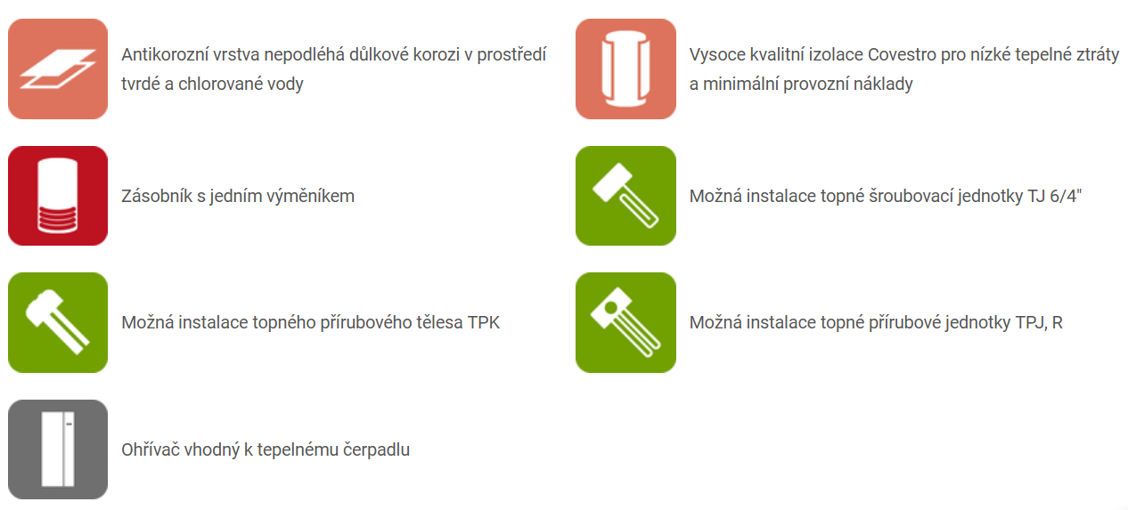 - Příprava teplé vody celoročně topnou vodou z tepelného čerpadla