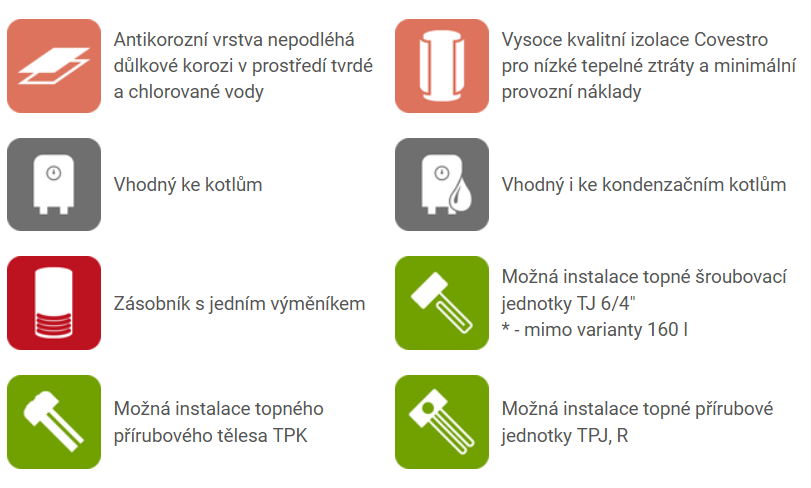 Zásobník lze napojit na externí teplovodní zdroj s max. teplotou 110 °C a tlakem 1 MPa