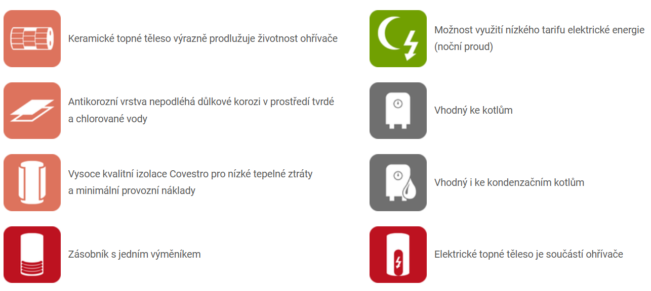 - Ohřev TUV celoročně topnou vodou z plynového kotle pro zapojení s přednostním ohřevem TUV nebo kombinovaný provoz topná voda a elektrická energie