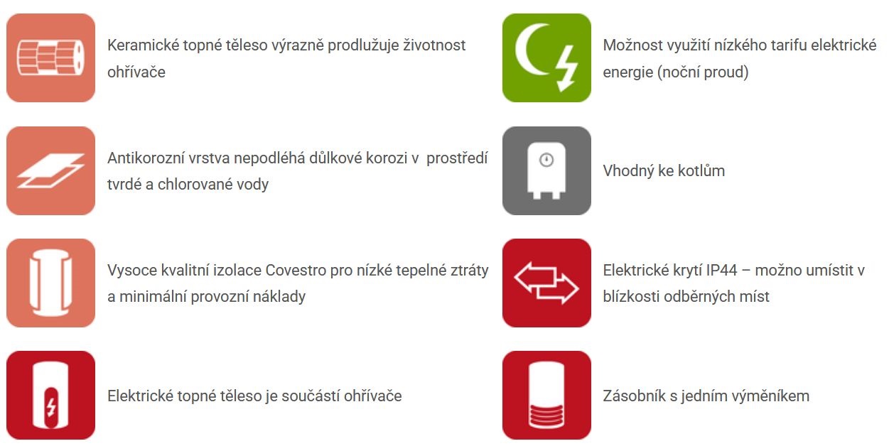 Kombinovaný ležatý ohřívač vody OKCV 125/L od firmy Dražice s keramickým topným tělesem a jedním výměníkem pro další zdroj tepla.
