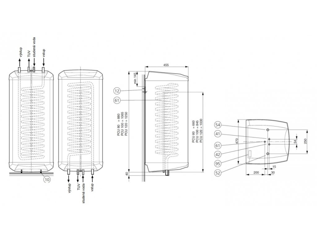 Nádrž ohřívače PCU-R je navržena pro maximální tlak 10 bar