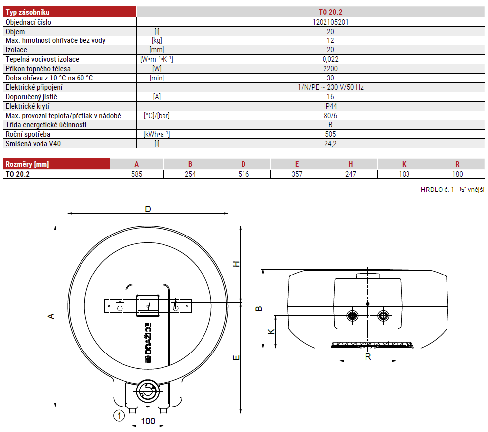 Dražice TO 20.2 elektrický tlakový ohřívač 1202105201