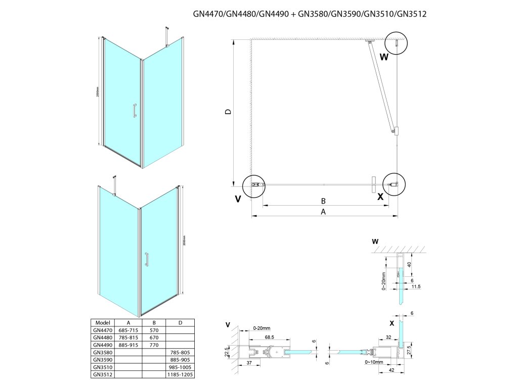 - Dveře je možno instalovat do niky nebo v  kombinaci s  boční stěnou