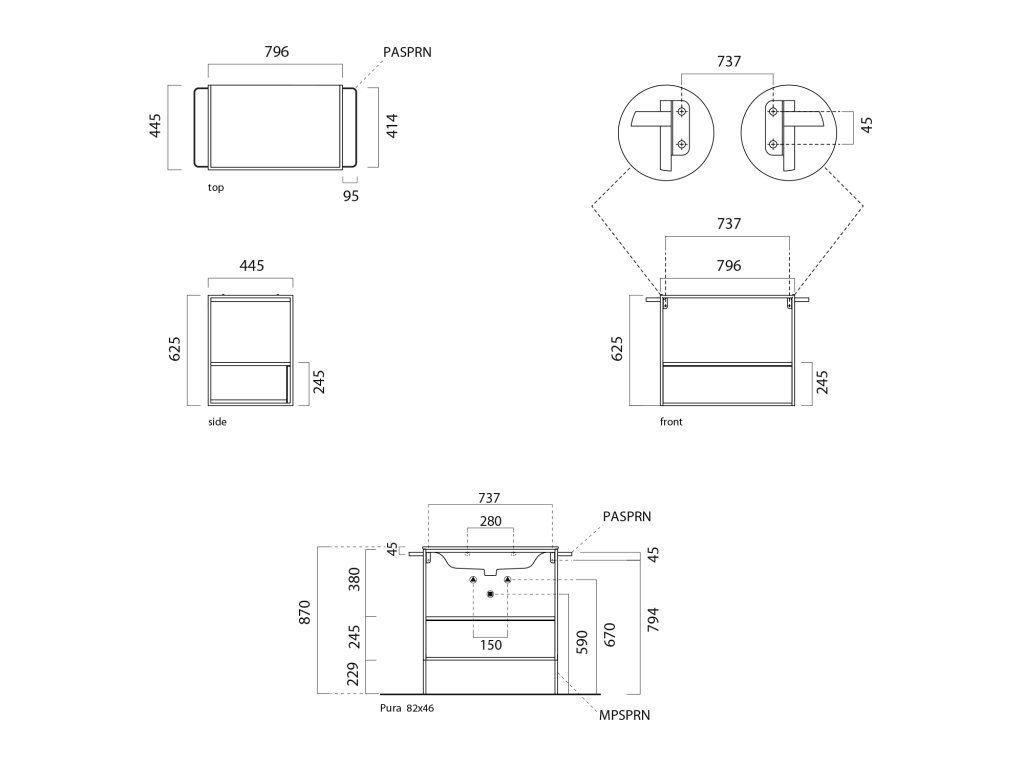 GSI Pura konstrukce pod umyvadlo 82,6 x 46 cm černá mat/ořech MSAP82N