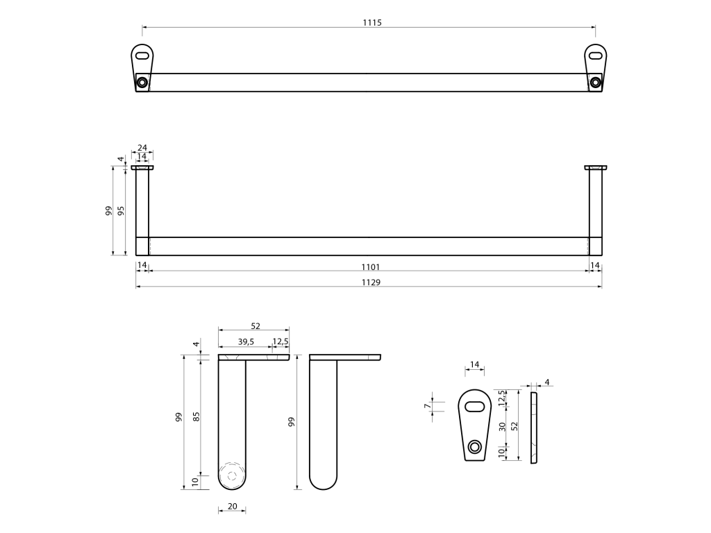 GSI Sand čelní držák ručníků pod umyvadlo 120 cm chrom PASAND120