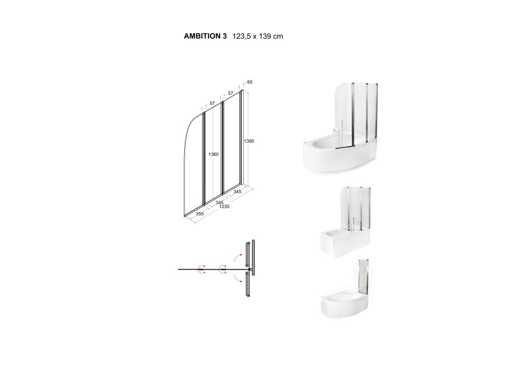 Besco AMBITION 3 123,5 x 139 cm BCAMB3CC vanová zástěna