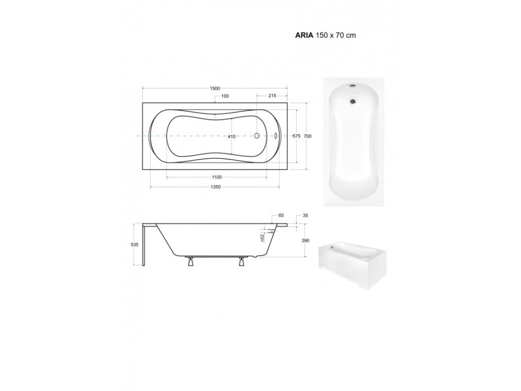 Besco ARIA 150 cm VANARIA150+OLVPINOZ vana vč. nožiček