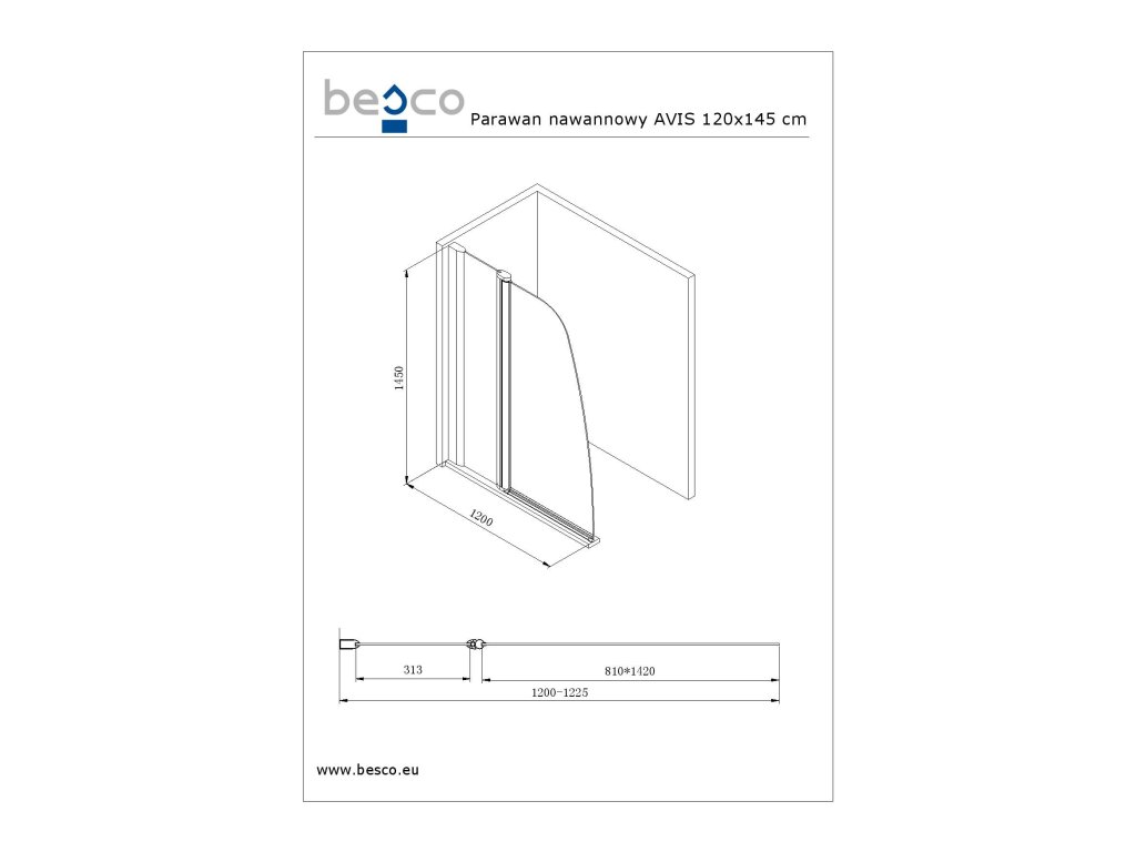 Besco AVIS vanová zástěna 120 x 145 cm BCAVIS120CC