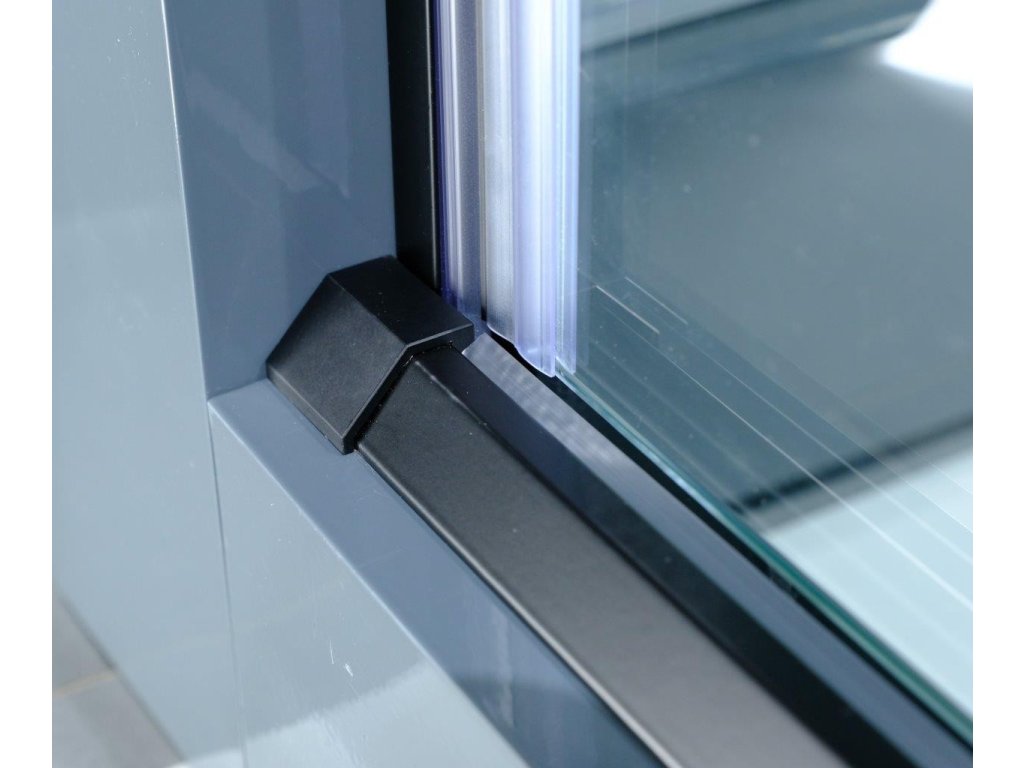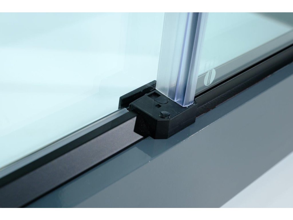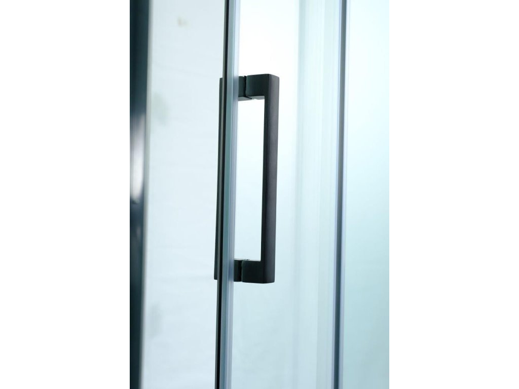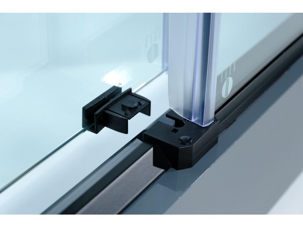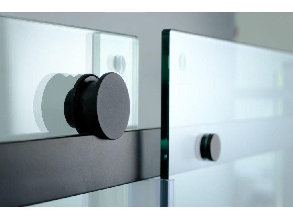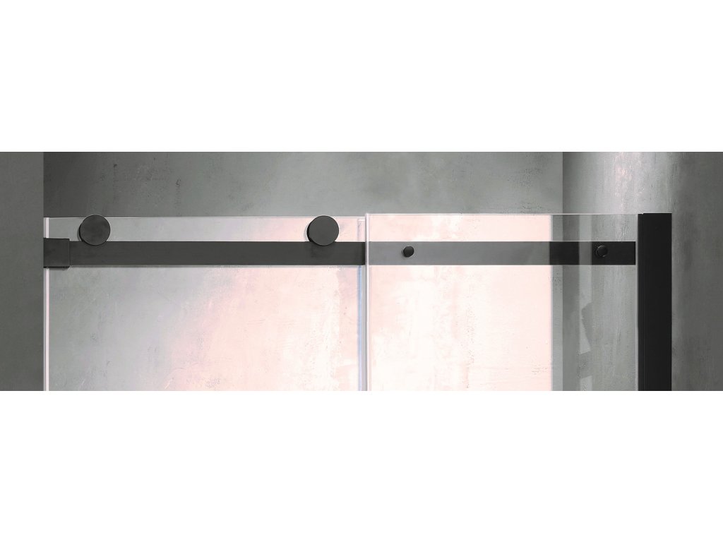 Luxusní skleněné posuvné dveře do niky v kvalitní černé barvě hliníkových profilů. Plynulý a komfortní pohyb dveří zajišťují horní masivní bezúdržbová ložisková kola a spodní vodící díl. Díky absenci spodního vodícího profilu, vzniká ideální bezbariérový vstup do sprchy. Tyto dveře jsou vyrobeny ze skel o síle 8 mm. Dodává se v univerzálním pravém i levém provedení.