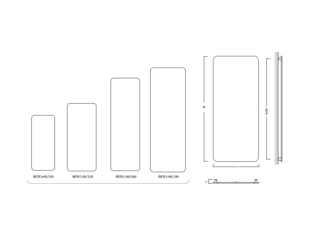 Dostupné rozměry radiátoru BIONIC do koupelny: