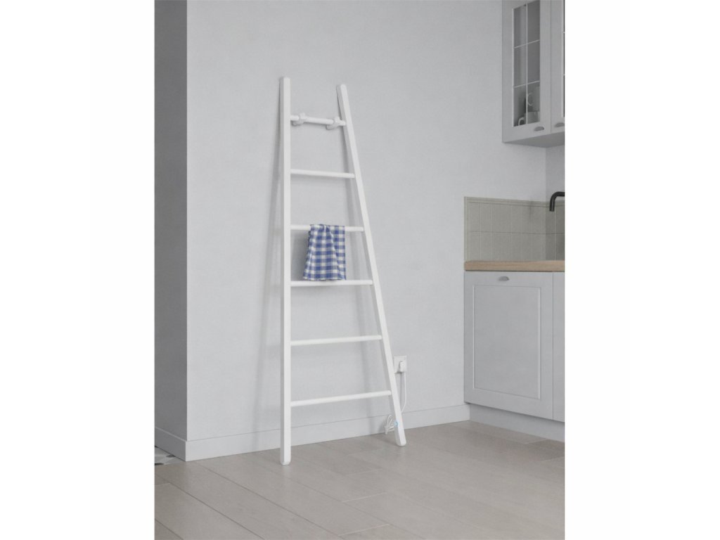 Elektrický sušák ručníků ESCADA 2 do moderního interiéru s hloubkou pouze 10 cm v bílé barvě jsou nejen trubky a uchycení, ale i napájecí kabel a elektrická zástrčka. Sušák lze nainstalovat na zeď jako závěsný sušák nebo o zeď opřít a zafixovat horními úchyty. Uvnitř topného tělesa je umístěn odporový drát. Sušák je vyroben z profilů čtvercového průřezu ? 30x30 mm/ ? 20x20 mm.