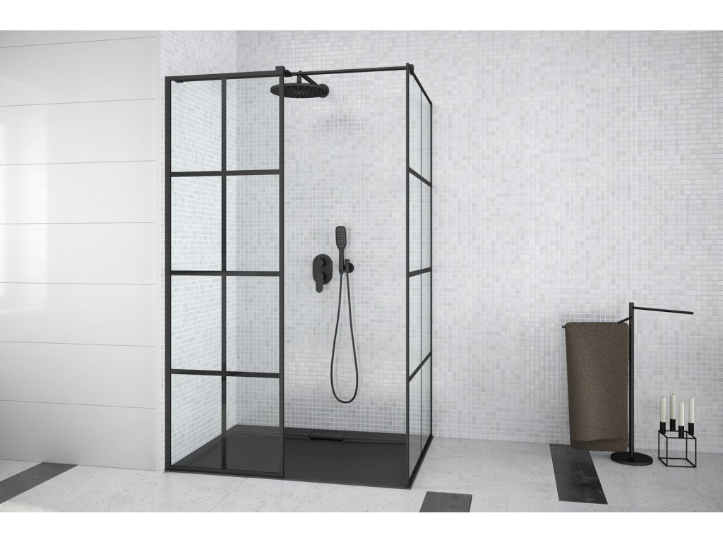 Besco Excea Walk-in sprchová zástěna 90 x 190 x 120 cm černá sklo čiré BCEXCEA9012