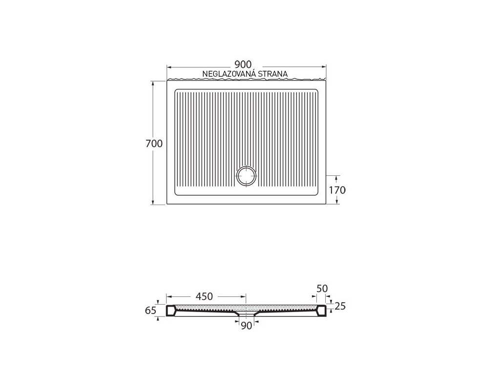 Sprchová vanička umožňuje kromě instalace na podlahu se zapuštěným sifonem i klasické podezdění vaničky.