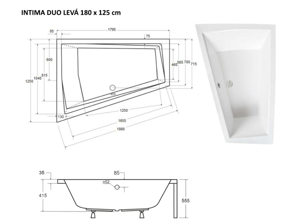 Besco INTIMA DUO 180 x 125 cm VANINTID18L+OLVPINOZSTELID vana vč. nožiček levá
