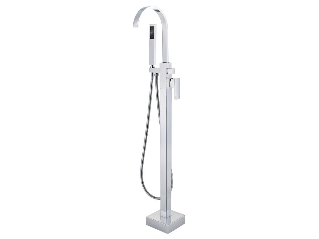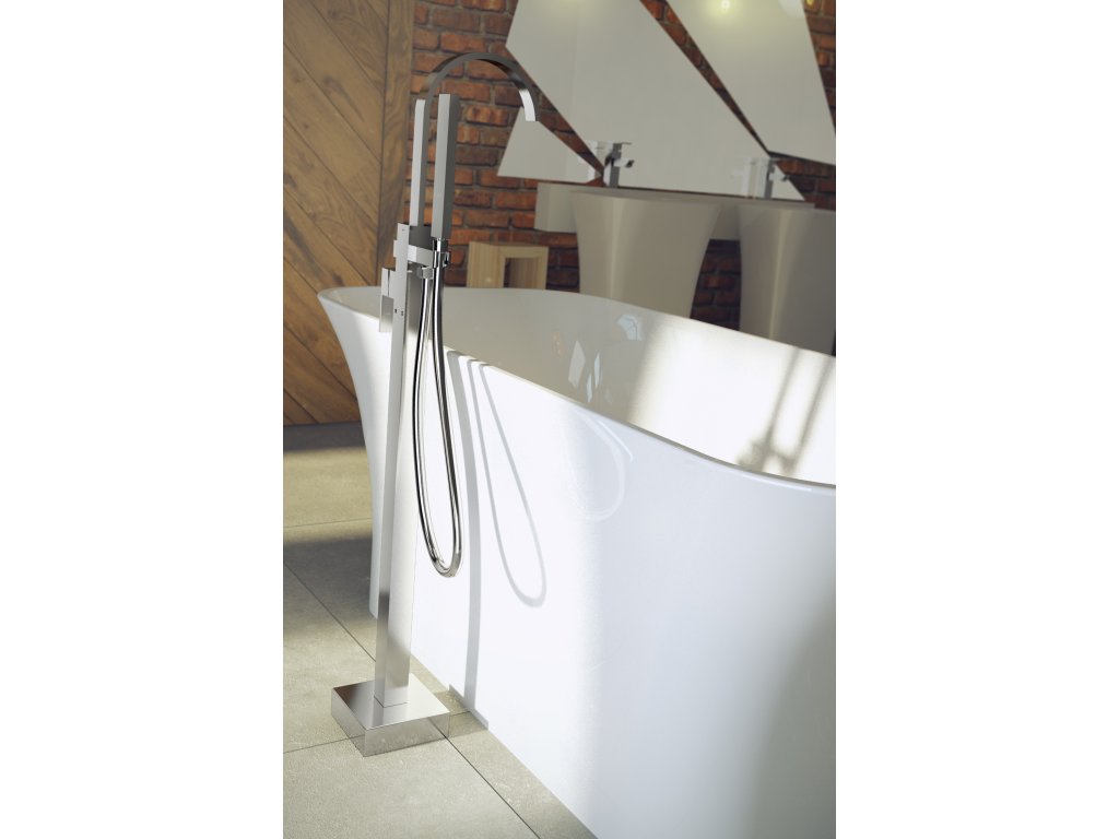 Vanová stojánková baterie je dodávána včetně příslušenství (sprchová růžice a hadice).
