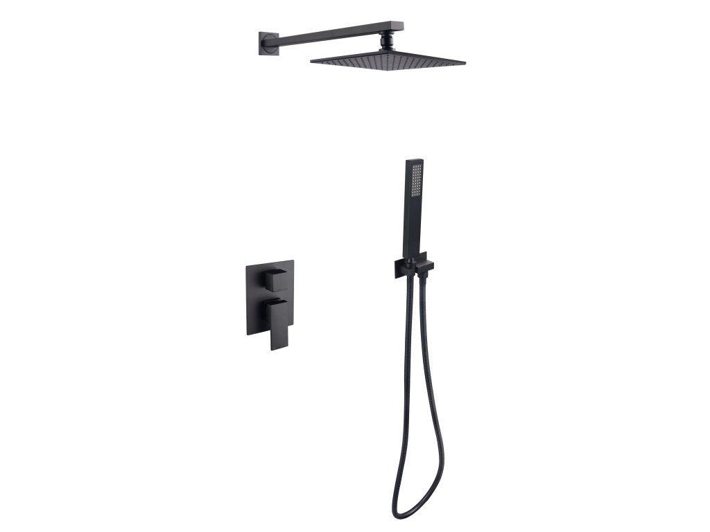 - Set obsahuje podomítkovou baterii, vývod ze stěny, ruční sprchu, hadici sprchy a držák, hlavovou sprchu