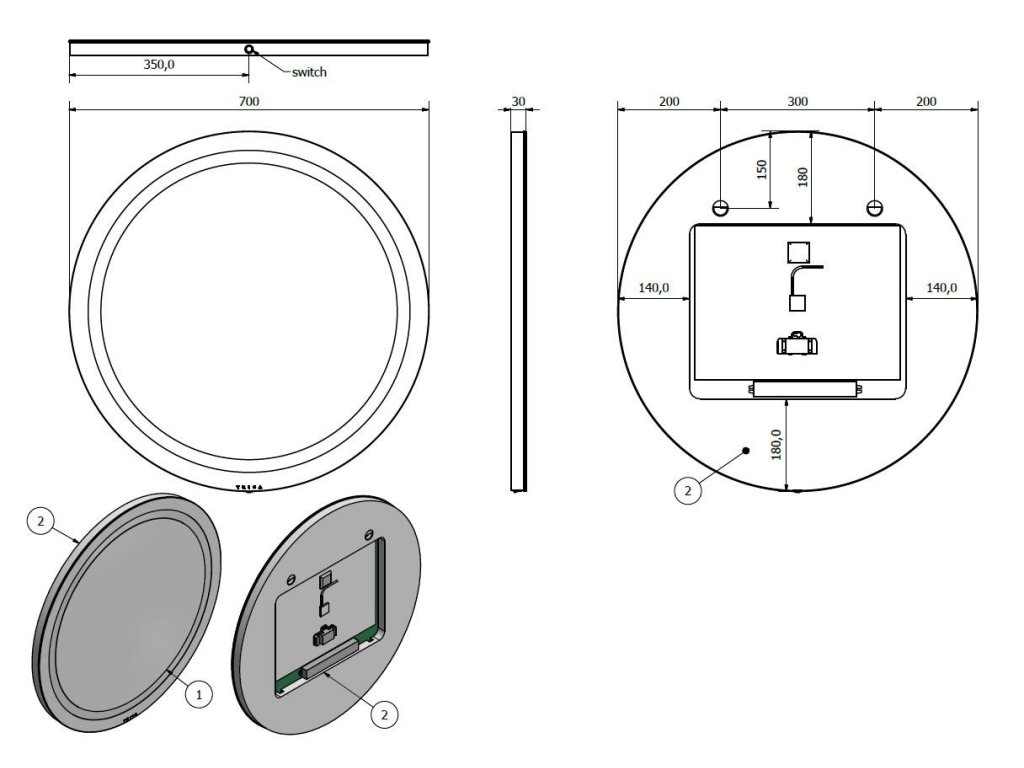 POZOR - U tohoto typu LED zrcadla nelze z příplatkové výbavy součastně osadit vyhřívací fólii a kosmetické zrcátko.