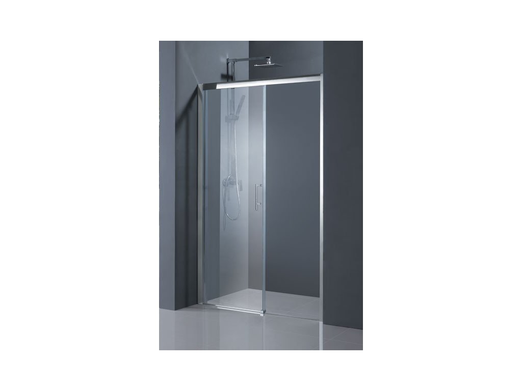 Skleněné posuvné dveře Estrela od firmy Hopa řeší atypické vstupy v prostorných koupelnách. Díky absenci spodního vodícího profilu, vzniká bezbariérový vstup do sprchy.