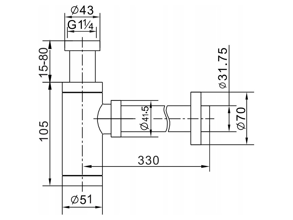 Hopa umyvadlový sifon 5/4 bez click clack kovový univerzální kulatý grafit BAMAX267698