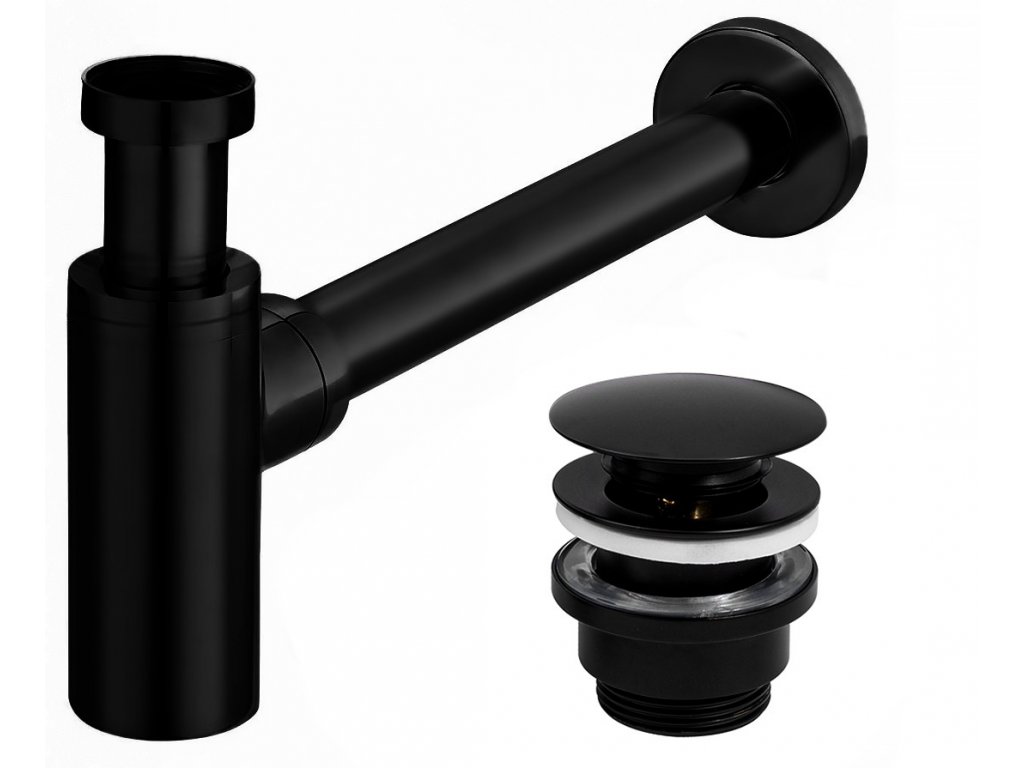 Umyvadlový kovový sifon s click clack zátkou univerzální černá