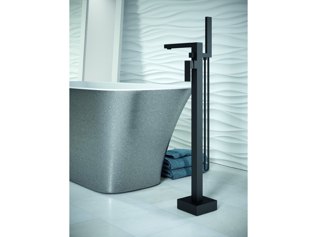 Stojánková baterie do podlahy vypadá skvěle v kombinaci s volně stojící vanou.