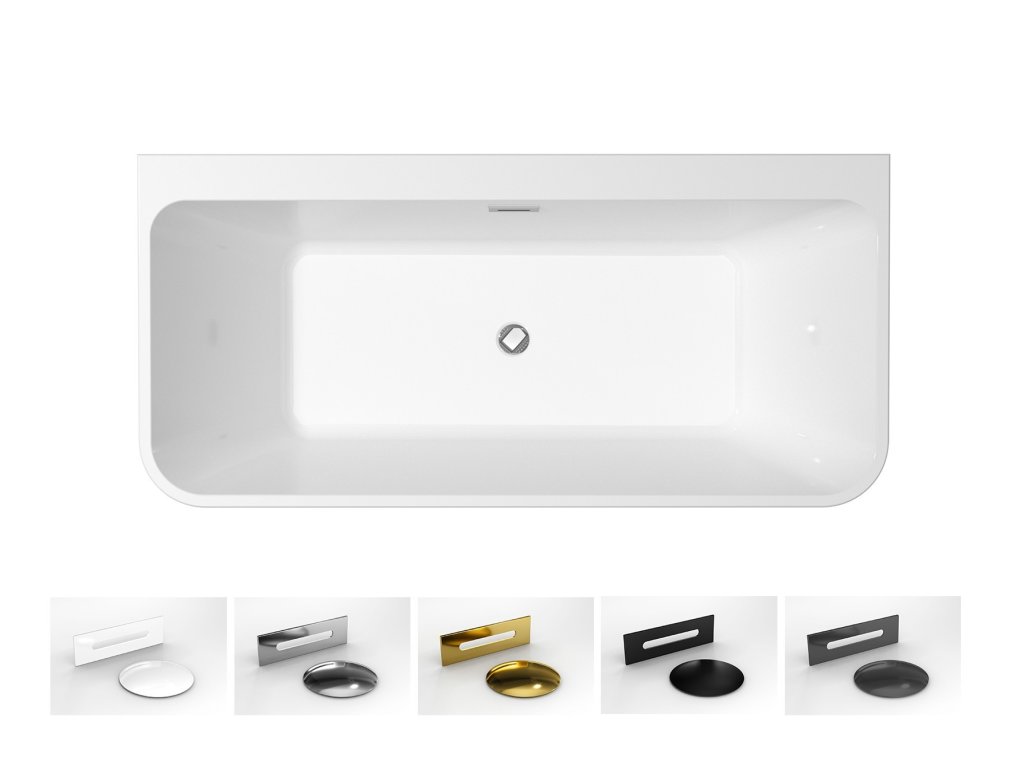 Součástí vany je i odtoková souprava click-clack s přepadem, v barvách: