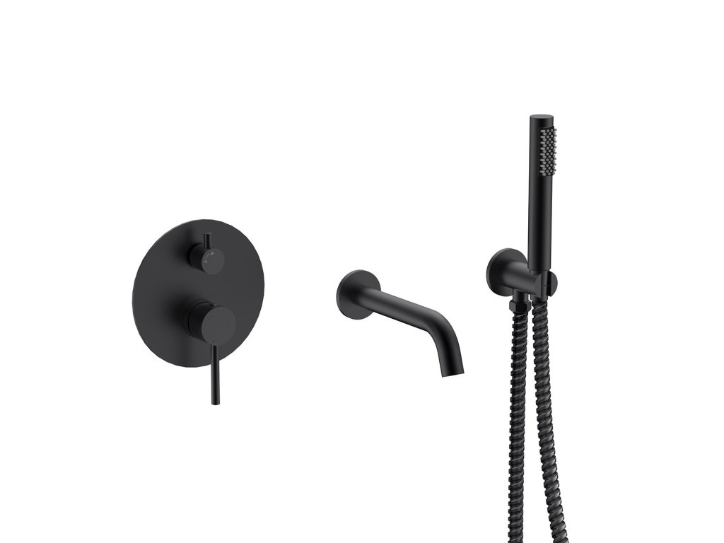 - Set obsahuje podomítkovou baterii, vývod ze stěny s držákem, ruční sprchu a hadici