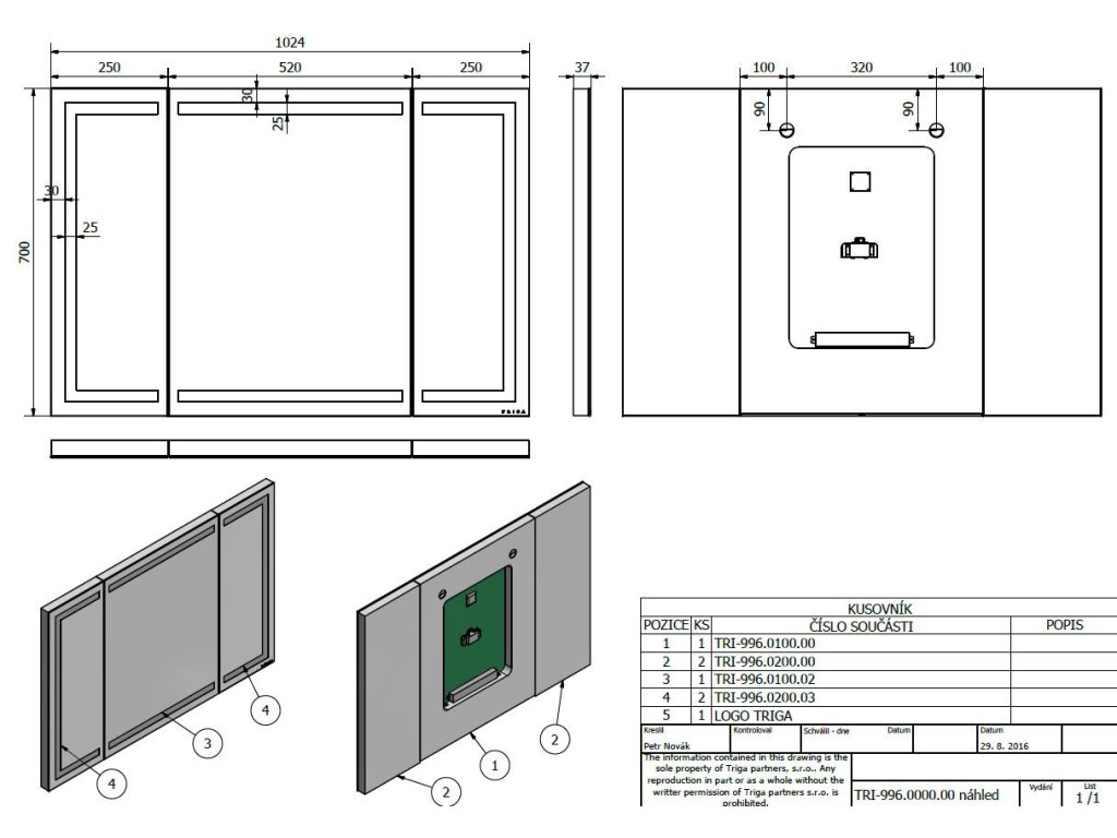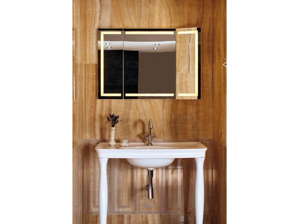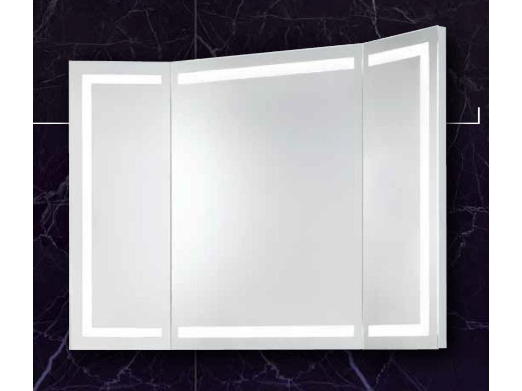 Koupelnové zrcadlo Hopa Vlára s LED osvětlením po okraji celého zrcadla a dvěma polohovatelnými křídly. Zrcadlo lze zavřít.